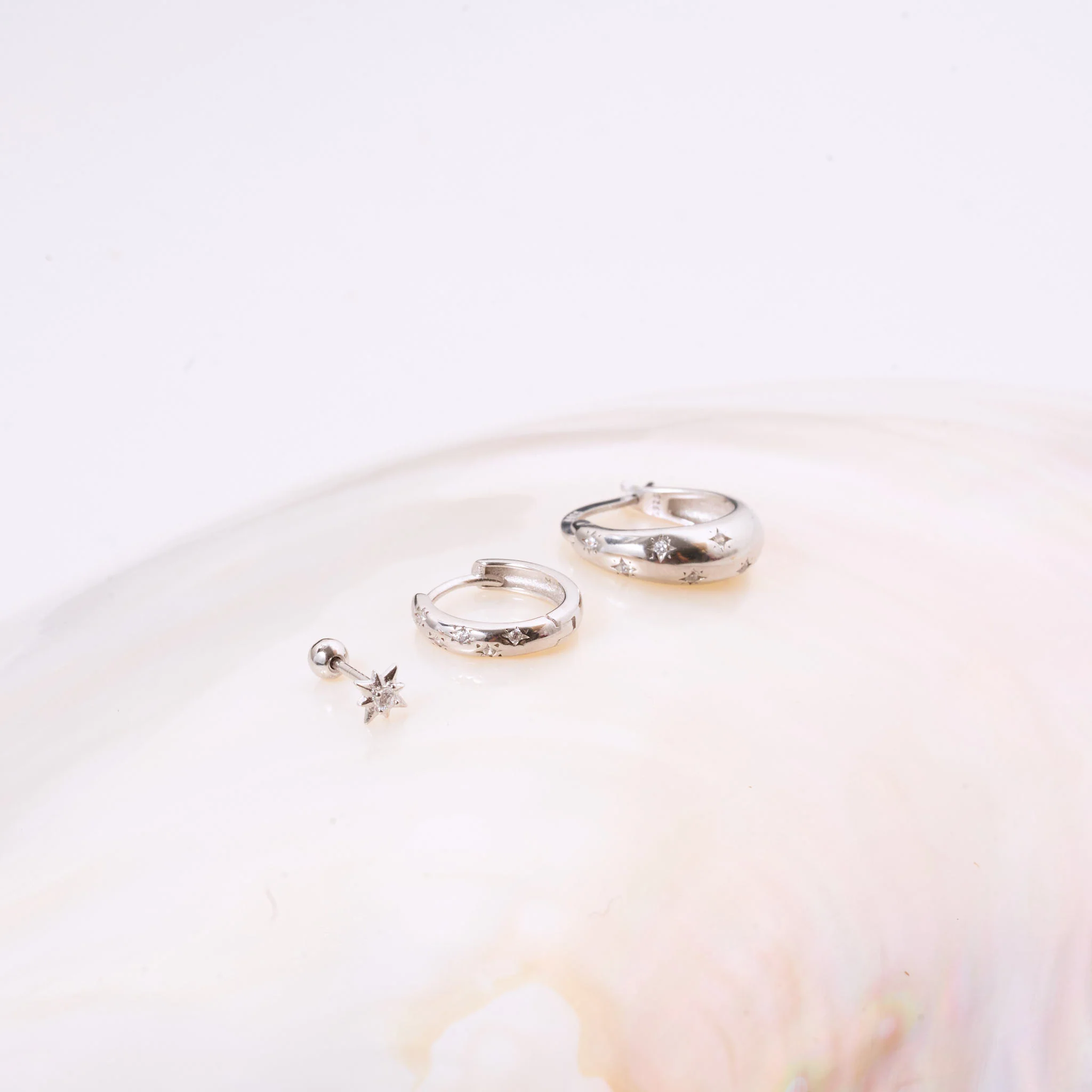 Celestial Huggie Hoops Set in Silver