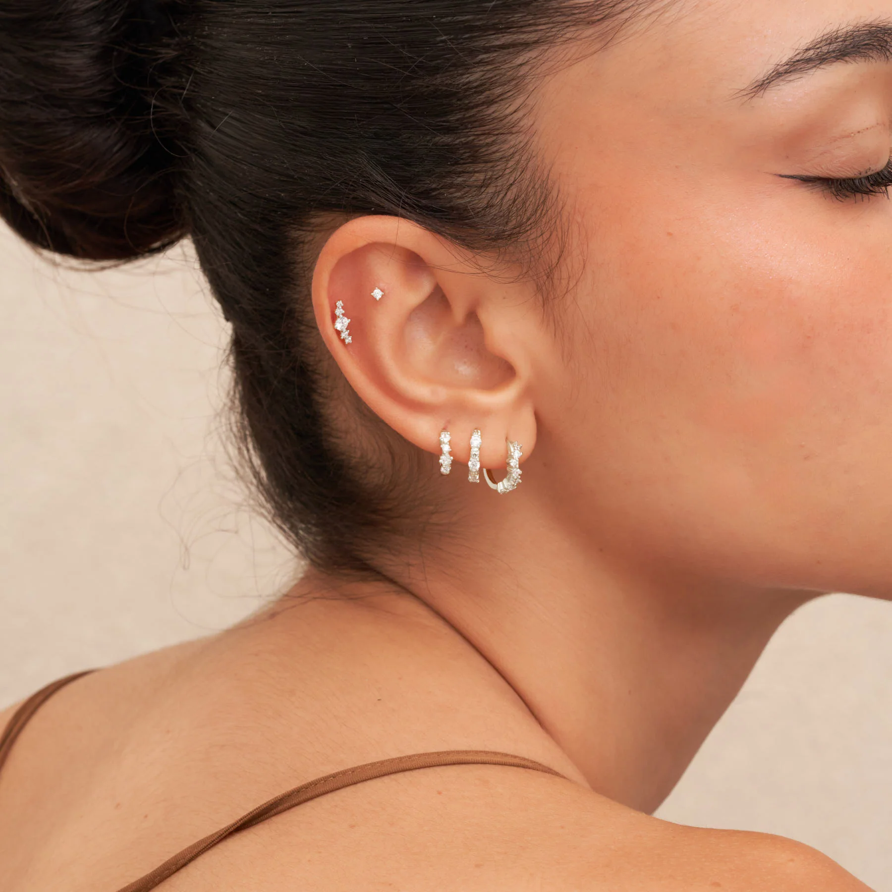 Inspired by the night sky, this ear climber traces a gentle arc of graduated round-cut crystals, creating a bright “constellation” that hugs the curve of your ear. Lightweight and stack-friendly, it adds instant sparkle to everyday looks and special occasions alike.