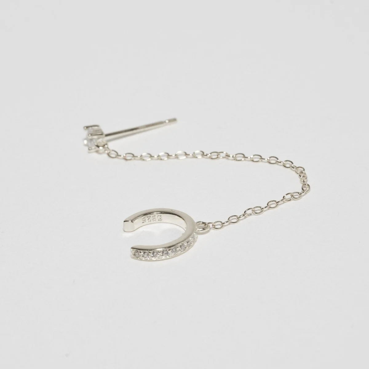 These elegant Silver Ear Cuff feature a polished gold cuff adorned with crystals, connected to a crystal stud by a delicate chain. Perfect for creating a layered look, they add a touch of modern sophistication to any outfit.