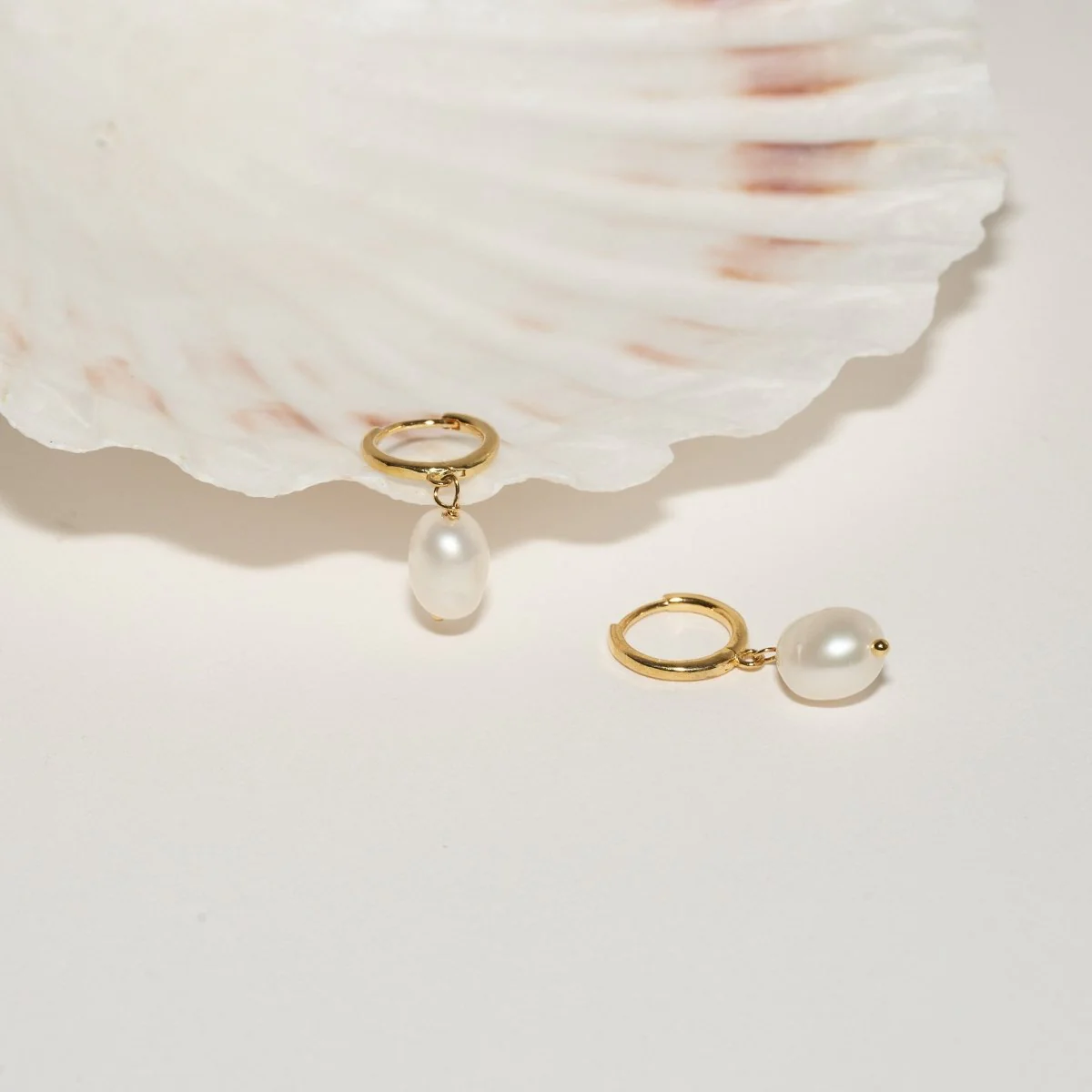 These gold-plated drop earrings showcase a stunning freshwater pearl that exudes timeless elegance and grace. The gentle sheen of the pearl is beautifully complemented by the gold finish, creating a sophisticated accessory that pairs effortlessly with both casual and formal ensembles. A classic addition to your jewellery collection.
