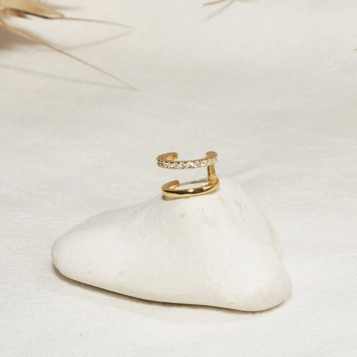 These ear cuffs effortlessly elevate your ear stack. Crafted in gold vermeil, the design combines a sleek band with a crystal-encrusted row for subtle sparkle and timeless style. Perfectly shaped to hug your ear, they’re a great addition for a bold or delicate layered look.
